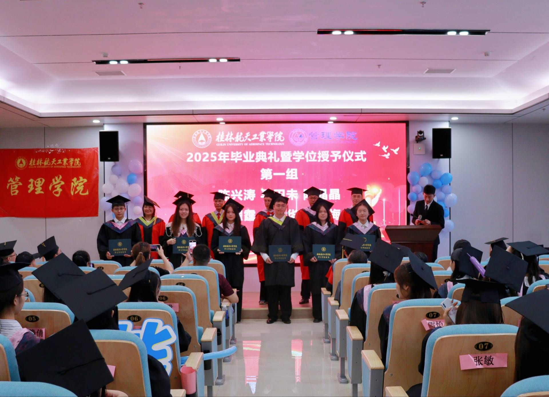 六月的桂航,阳光灿烂,繁花似锦。6月19日,管理学院2025届毕业典礼暨学位授予仪式在南校区问天楼小报告厅隆重举行。学院党委书记尹剑武,院长周小勇,党委副书记潘小玲,副院长阳正义、徐平磊,各教研室主要负责...