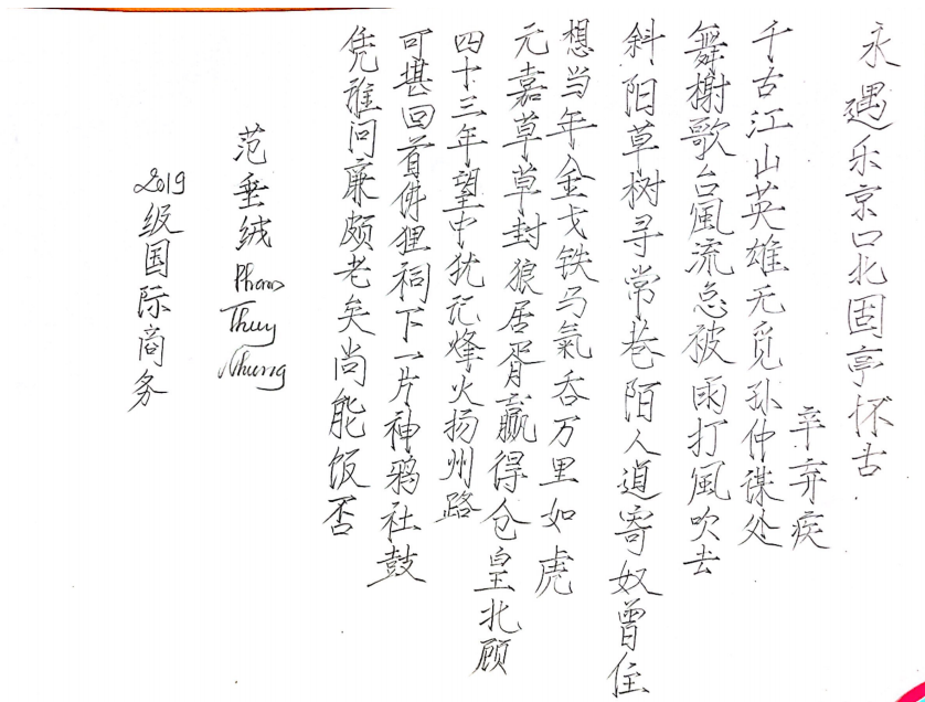 为丰富留学生校园文化生活,营造浓厚的中文学习氛围,激发留学生们书写汉字的热情,感受中国汉字和诗词之美,近日,我校组织了境内外四名留学生报名参加了由广西留管学会主办的第二届留学生网络书法大赛。此次书...