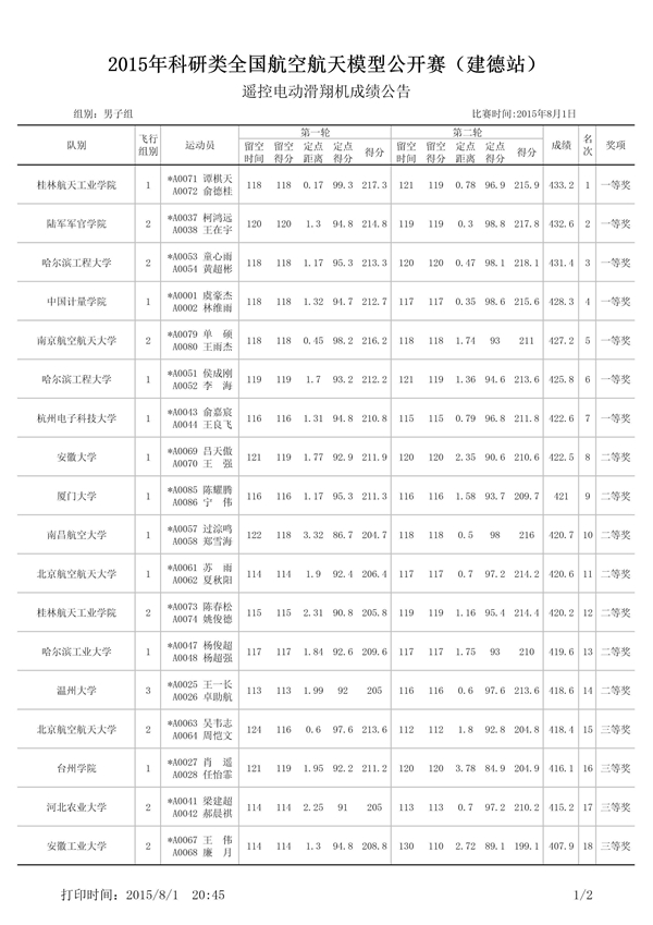 2015-08【喜讯】我校学生获得科研类全国航空航天模型公开赛第一名