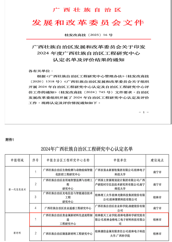 近日,根据《关于印发2024年度广西壮族自治区工程研究中心认定名单及评价结果的通知》(桂发改高技〔2025〕16号),我校牵头申报的“广西贵金属新材料先进流程制造工程研究中心”正式获广西壮族自治区发展和改革...