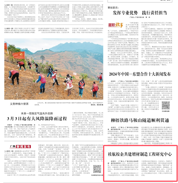 2025-03【广西日报】桂航校企共建增材制造工程研究中心