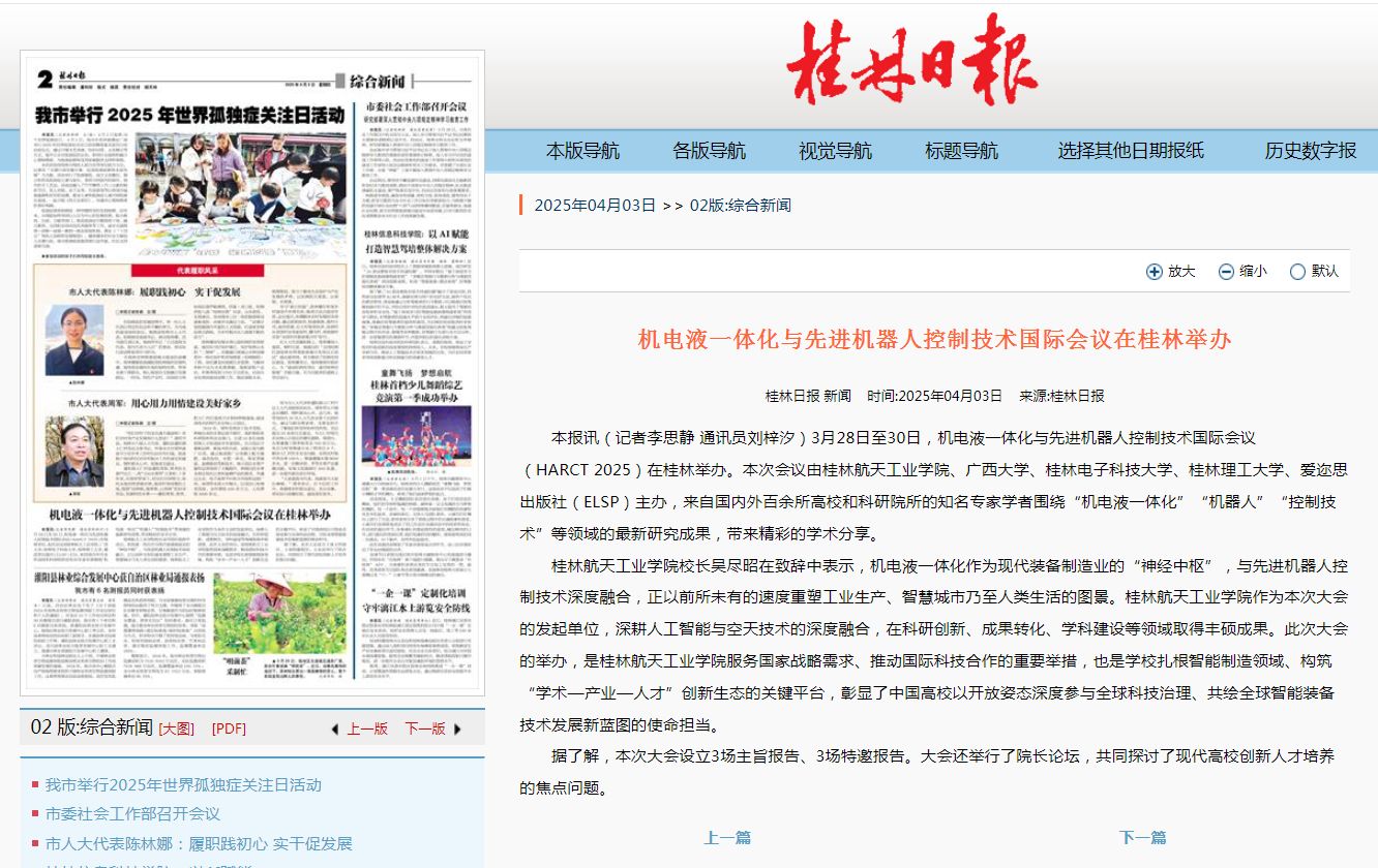2025-04【桂林日报】机电液一体化与先进机器人控制技术国际会议在桂...