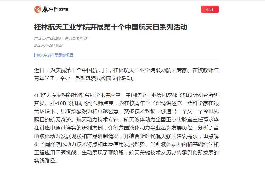 2025-04【广西云-广西日报】乐竞官网开展第十个中国航天日系...