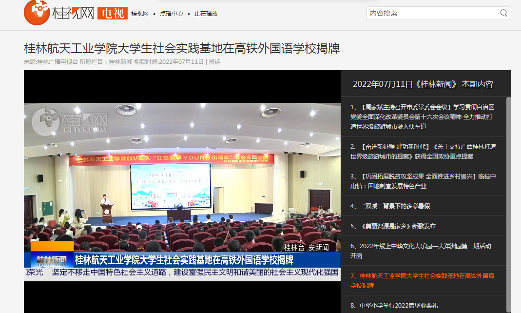 2022-07【桂林电视台】乐竞官网大学生社会实践基地在高铁外...
