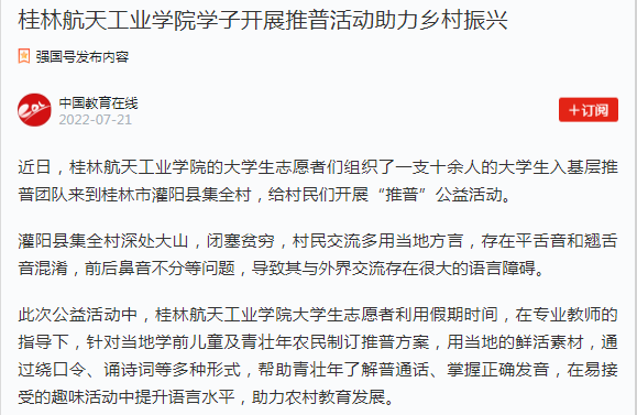 2022-07【学习强国】乐竞官网学子开展推普活动助力乡村振兴
