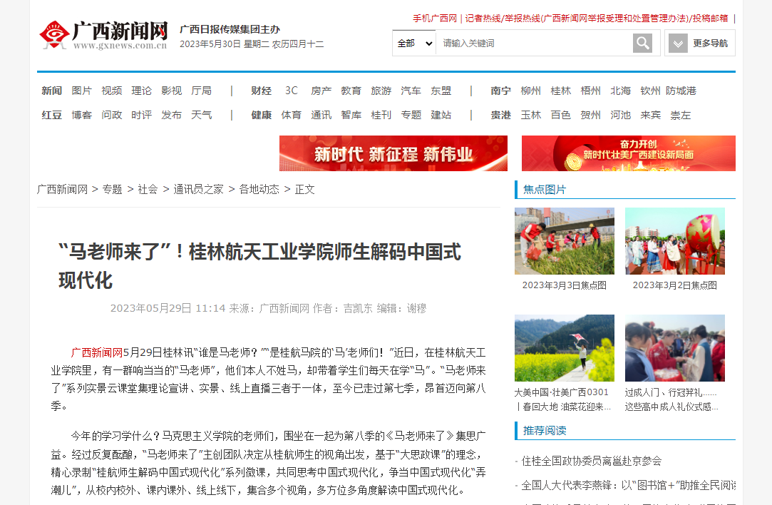 2023-05【广西新闻网】“马老师来了”!乐竞官网师生解码中...