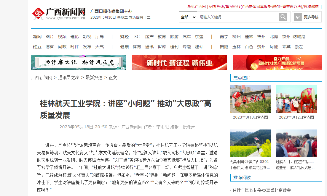 2023-05【广西新闻网】乐竞官网:讲座“小问题” 推动“大思...