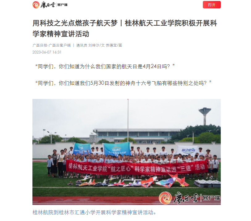 2023-06【广西云】用科技之光点燃孩子航天梦丨乐竞官网积极...