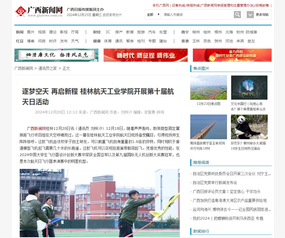 2024-12【中国新闻网】桂林高校学子自主研发飞行器亮相航天日活动成...