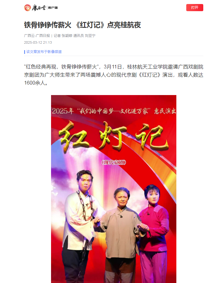 2025-03【广西云-广西日报】铁骨铮铮传薪火 《红灯记》点亮桂航夜