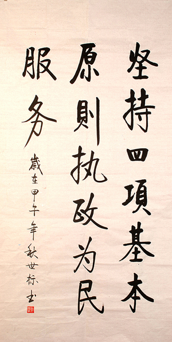黄世标书法作品《坚持四项基本原则执政为民服务》