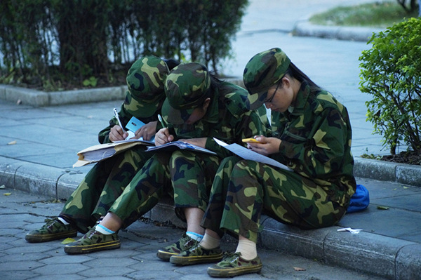 军训第一周,秋意渐浓,骄阳依旧。骄阳下,新生们阔步昂扬、英姿飒爽,认真记下、练习教官说的每一个动作要领,以期在大检阅中一展风采。
