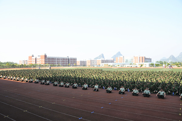 10月8日上午,我校在南校区运动场隆重举行2014级军训开训仪式。副院长詹皖生、武警桂林支队副参谋长俞德海出席了仪式并作讲话。学工处、教务处、武装部、国际教育交流中心、院团委等部门负责人及各系党总支副书记参加了开训仪式。