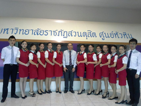 根据我校与泰国川登喜皇家大学华欣校区签订的交换协议,今年4月份,我校派出带队老师及2012级航空服务专业学生一行15人赴泰国进行专业学习和交流,近日,我校赴泰师生圆满结束课程学成回国。