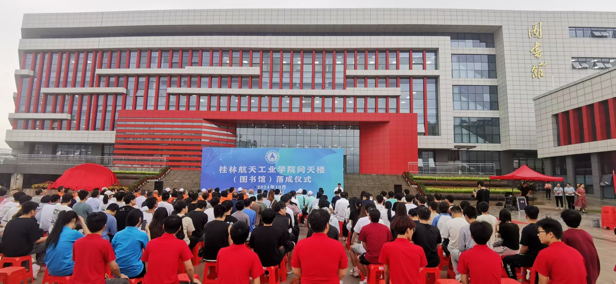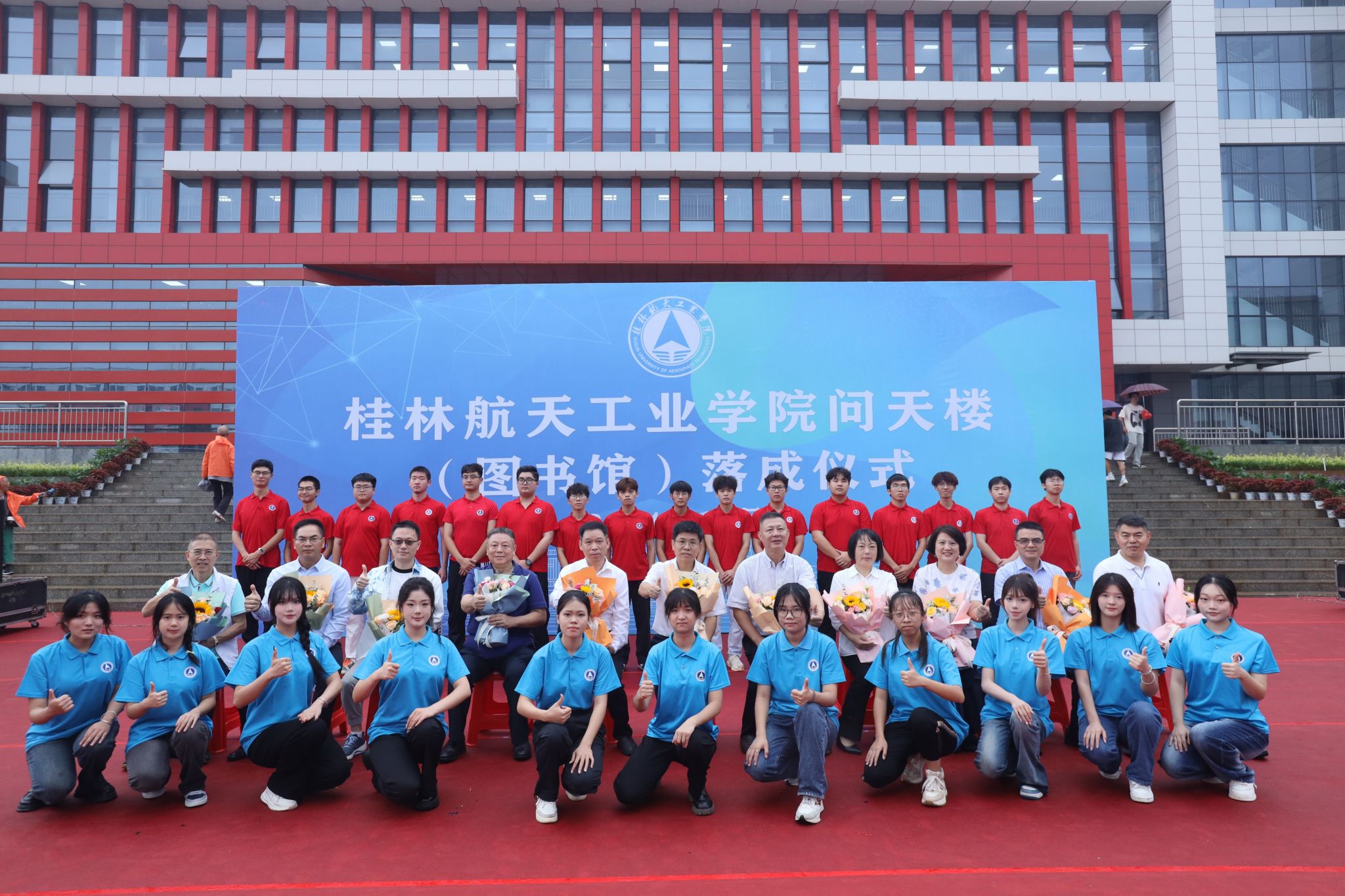 时值我校成立45周年之际,10月18日,我校问天楼(图书馆)落成仪式在问天楼广场隆重举行,学校党委书记韩峻峰、副书记孙山林、副校长胡泽民、副校长葛莉出席活动;1982级计算机应用专业、深圳华波美科技集团董事长王丹,1986级劳动管理专业、中国航天科工集团深圳公司香港分公司总经理赵文莉,1991级物资供销专业、贵州开源企业集团董事长黄喜桢,1992级工业外贸专业、深圳汇海宏融投资发展有限公司董事长林建武,1992级物资供销专业、桂林光隆科技集团股份有限公司董事长彭晖,2001级商务英语专业、深圳穿针引线股份有限公司董事长聂勇,桂林校友会会长白杰等作为特邀校友代表出席,仪式由孙山林副书记主持。