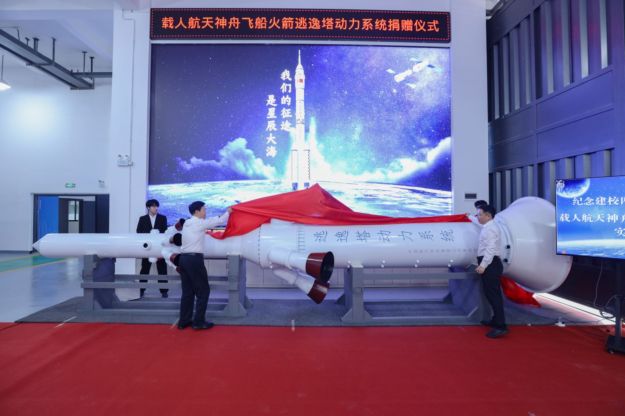 据悉,这套保证航天员生命安全的火箭逃逸救生系统正是由航天科技四院研制的。航天科技四院始建于1962年,是我国历史最久、规模最大、专业最全、配套最完整的固体火箭发动机专业研究院。此次捐赠不仅为航天精神的传承与发展增添了新的动力,也进一步激发师生对科技创新技术的热爱和求索精神,进一步丰富了教育资源与实物教学、激发了研究兴趣与创新启发,为学校“钱学森”班的组建奠定了良好基础,为航天品质应用型人才培养注入新动能。