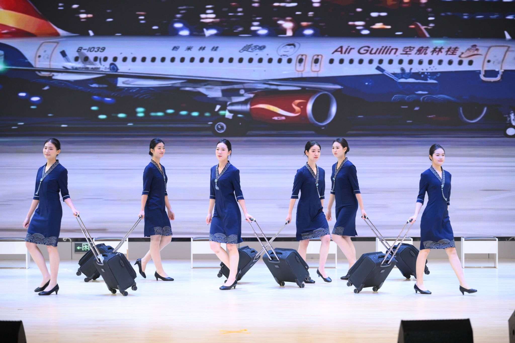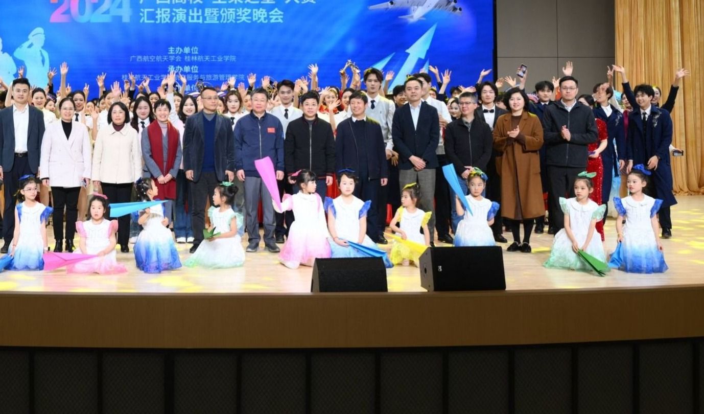 12月18日晚,由学校和广西航空航天学会主办,航空服务与旅游管理学院承办,广西(桂林)低空旅游研究院等单位协办的广西高校“空乘之星”大赛汇报演出暨颁奖晚会在问天楼报告厅举行。学校党委书记韩峻峰,校长吴尽昭,党委副书记、纪委书记吴江萍,党委副书记孙山林,副校长葛莉,副校长张烈平,副校长张立国出席了本次活动。桂林市文化广电和旅游局、桂林航空有限公司、桂林市高新区科创局、桂林市融媒体中心、桂林旅游学会、桂林市教育电视台、桂林市阳朔县委宣传部以及长期与我校保持合作交流的桂林电子科技大学、桂林旅游学院、柳州职业技术大学、广西蓝天航空职业学院、桂林技师学院、洲际航空有限责任公司、广西夏日航艺培训学校、南宁彤景模特经纪有限公司、广西艺鸣艺术培训学校等学校及企业代表参加晚会。