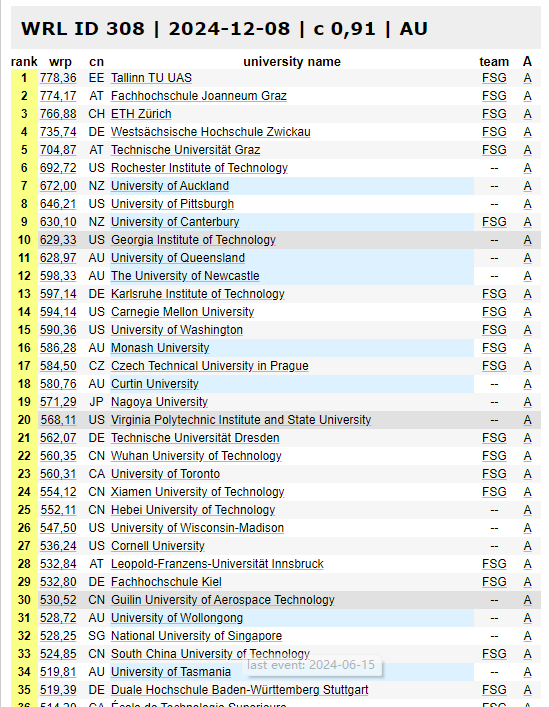 近日,全球大学生方程式汽车大赛官网发布了全球大学生方程式车队排行榜,共有来自全球各国的503支大学生方程式车队进入排行榜,我校航V大学生方程式车队位列该排行榜第30位。共有49支中国大学生方程式车队进入排行榜,其中,有4支中国车队进入前30名,分别为:武汉理工大学、厦门理工学院、河北工业大学、乐竞官网。