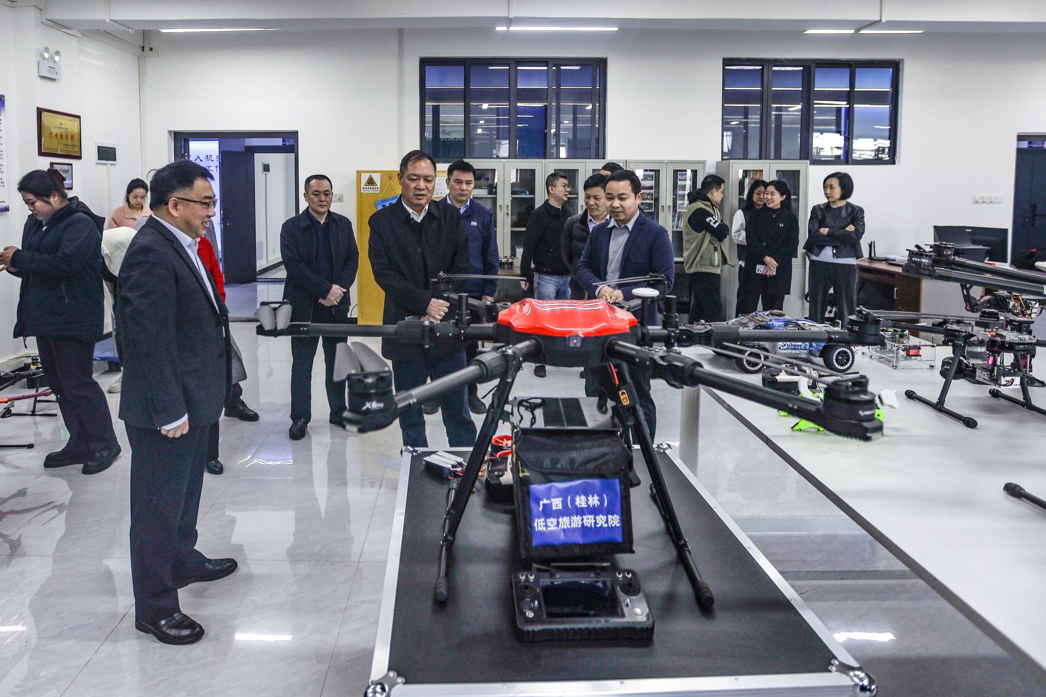 仪式上,校政企三方签订了合作协议。会后,与会嘉宾一同参观了“桂林低空人才培训基地”。