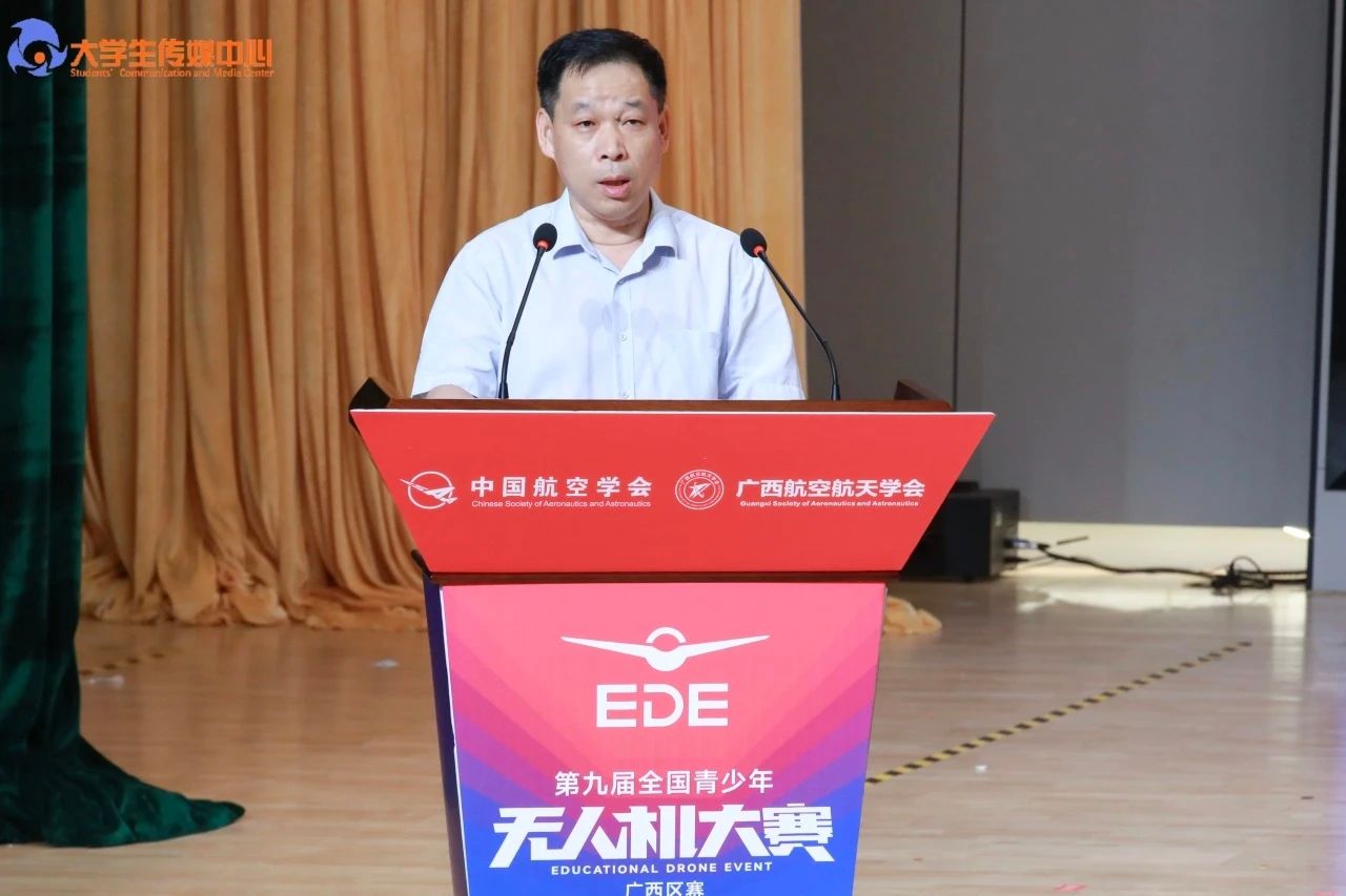 中国航空学会党委委员、执行秘书长周竞赛表示:“空天科技是国家科技实力与综合国力的战略基石。”他指出,作为我国航空科技领域的国家级学术组织,中国航空学会始终践行科普筑基、人才培优两大核心使命。全国青少年无人机大赛作为核心载体,历时八年已成为行业标杆,累计覆盖超10万青少年。特别值得一提的是,该项赛事自2020年起连续入选教育部赛事活动白名单,现已成为我国青少年无人机领域最具权威性、专业性和影响力的品牌赛事。学会将在科普领域持续发挥引领作用,着力构建体系化、规模化、国际化、品牌化的航空科普工作新格局。他特别对广西航空航天学会在构建‘校—地—企’科普生态链上取得的显著成效给予高度评价,肯定了其在培养青少年科技创新能力方面作出的积极贡献。