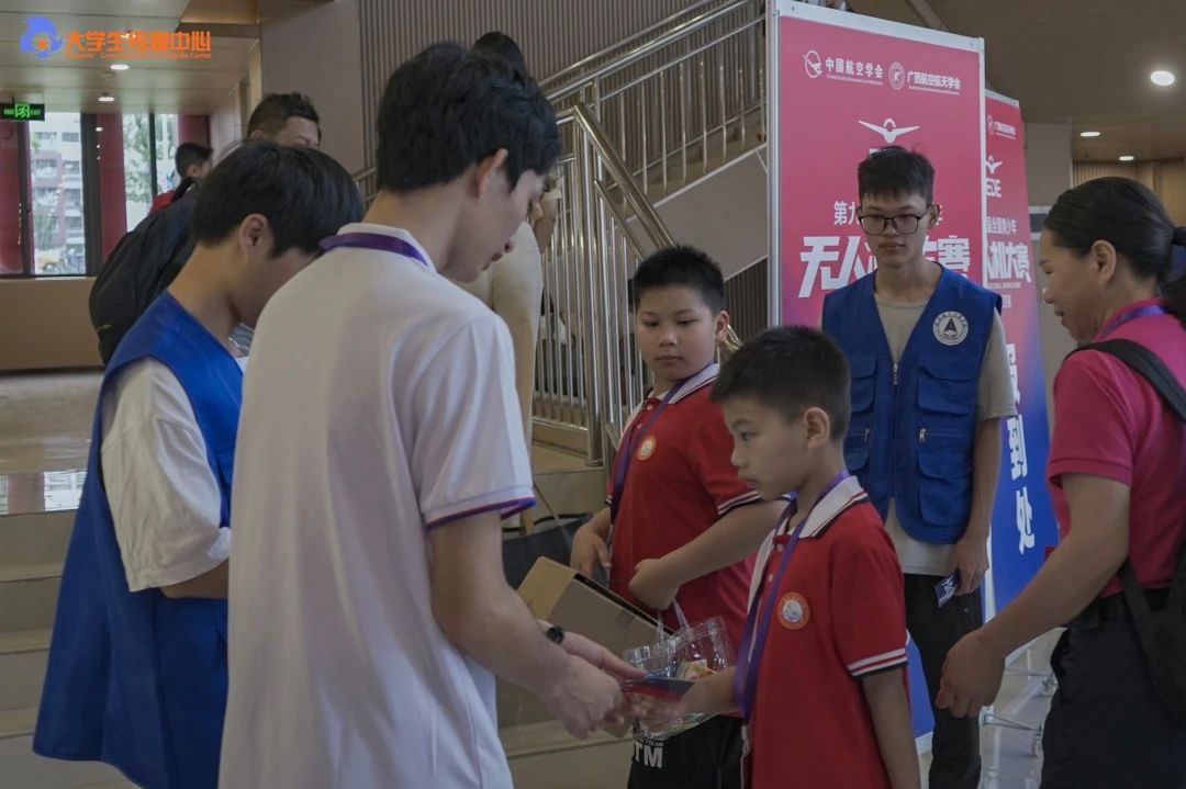 赛场之外,还设置了无人机展示与体验区,让更多师生、家长近距离接触航空科技、感受“飞行的魅力”。志愿者们分布在校园多处航天航空文化打卡点,为到校选手家长提供热情服务。