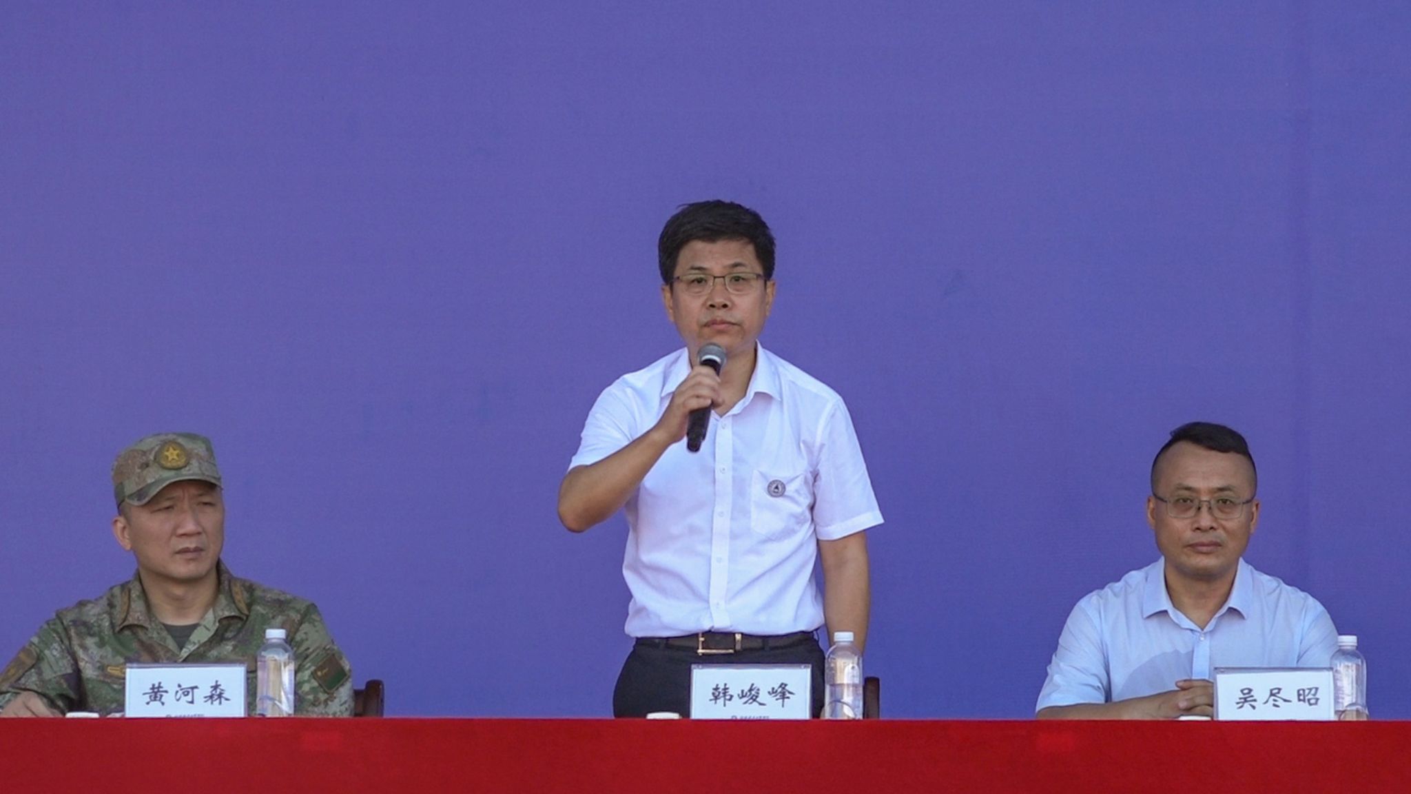 校党委书记韩峻峰宣布2025级新生军训开训。