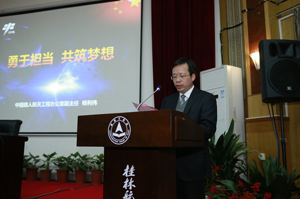 他认为,该校精心打造的航天特色校园文化工程,是近年来广西高校优秀校园文化成果的典型代表,作为航天文化进校园最亮眼的一笔,杨利伟将军的报告会,也必将为全区各高校校园文化建设工作提供宝贵的新思路、新经验。