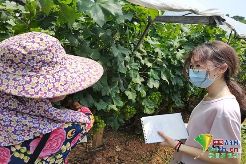 7月22日,实践团队来到了毛竹山村进行走访调查。当地村民非常热情,只要在进出村子的路上看到有当地村民的私家车经过,招招手就可以搭上顺风车。走进山村,映入眼帘的是一望无际的葡萄园。经过与当地村民的沟通中,了解到毛竹山村早在几年前就开始在党的领导下种植葡萄,经过不断的发展,现在葡萄种植已经产业化,并且已经成为毛竹山村的支柱产业。