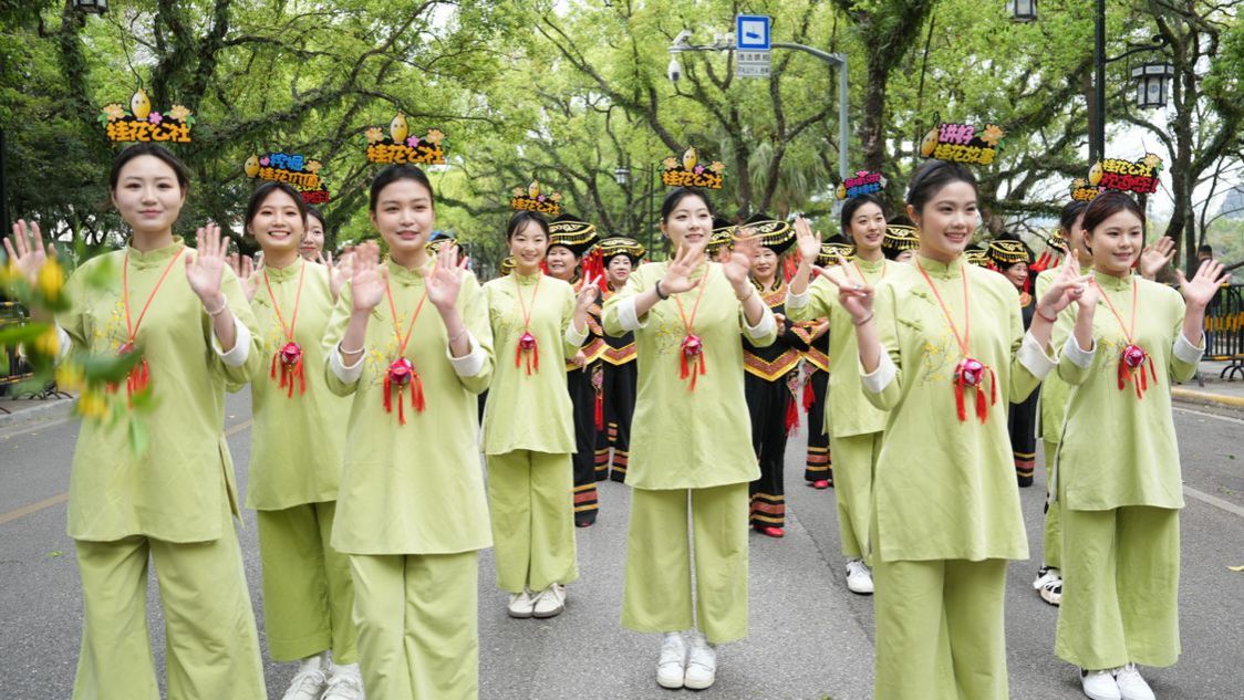 3月29日,桂林市秀峰区第十四届 “三月三” 民族歌圩荟、“文旅焕新” 巡游活动盛大开启,乐竞官网航空服务与旅游管理学院2024级空中乘务专业学生组成的桂航空乘方阵在活动中大放异彩。