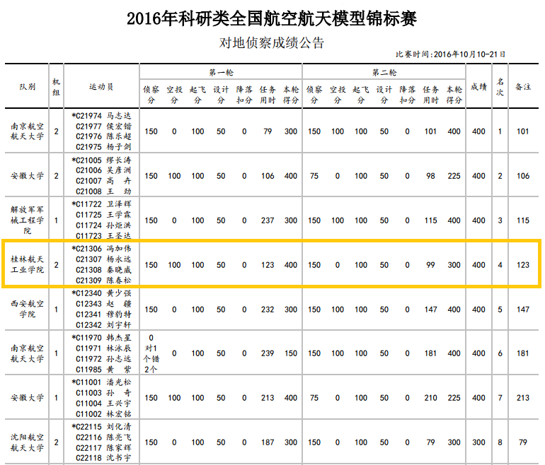 由国家体育总局、教育部和科技部联合主办的“2016年中国国际飞行器设计挑战赛暨‘科研类’全国航空航天模型锦标赛(简称CADC)”在10月15日至10月24日在江苏镇江举行,来自国内南京航空航天大学、沈阳航空航天大学等100所高校的2200多名选手参加了比赛。我校机械工程学院飞行器制造工程专业的9个参赛小组、电子信息与自动化学院的2个参赛小组的30多名学生代表学校参赛。