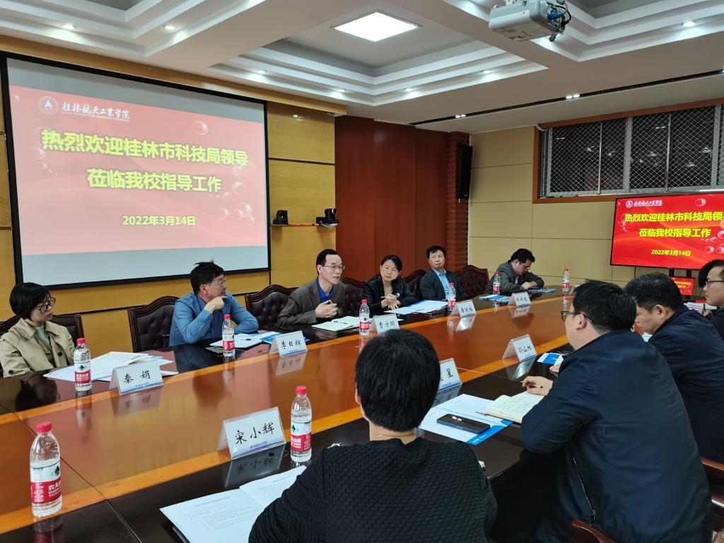 3月14日下午,桂林市科技局党组书记、局长曹方明一行到我校调研科技成果转化工作。孙山林副校长、科技处和机电工程学院相关负责人、科研平台教师代表参加了座谈。