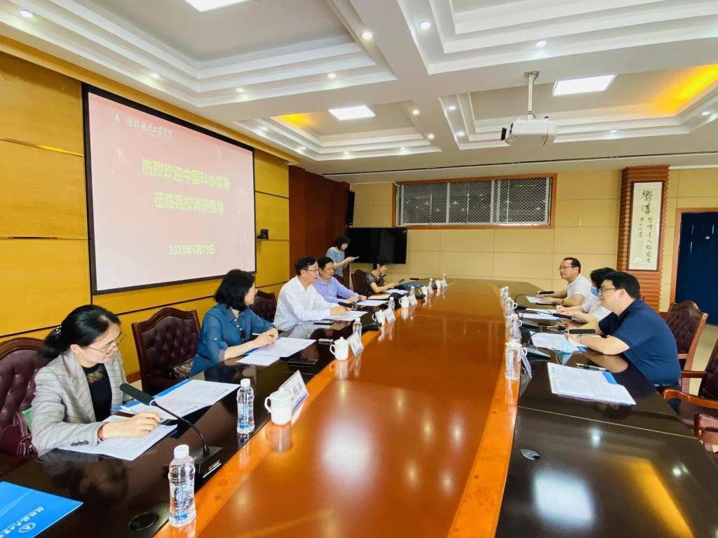 葛莉代表学校对中国科协学会党建研究会领导的来访表示热烈欢迎。她表示,作为广西唯一一所布局航空宇航专业的高校,桂航一直重视科技工作者队伍建设、科普等服务社会的工作,学校飞行表演队多次承担广西的航空航天科普及国防教育任务。相信桂航会以这次中国科协学会党建研究会访问为契机,进一步发掘学校科协工作发力点,围绕凝聚科技工作者力量等提质增效,进一步开拓工作新局面。
