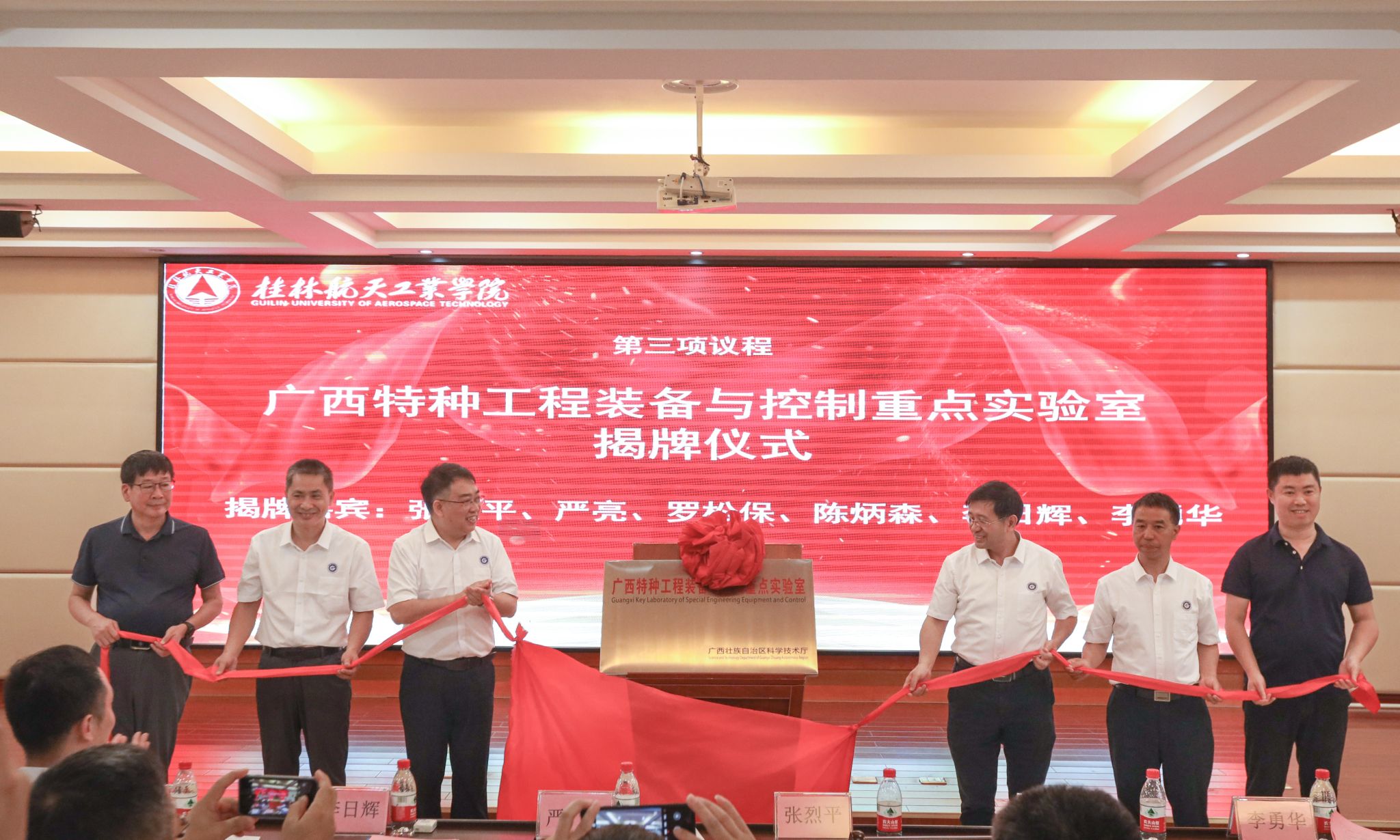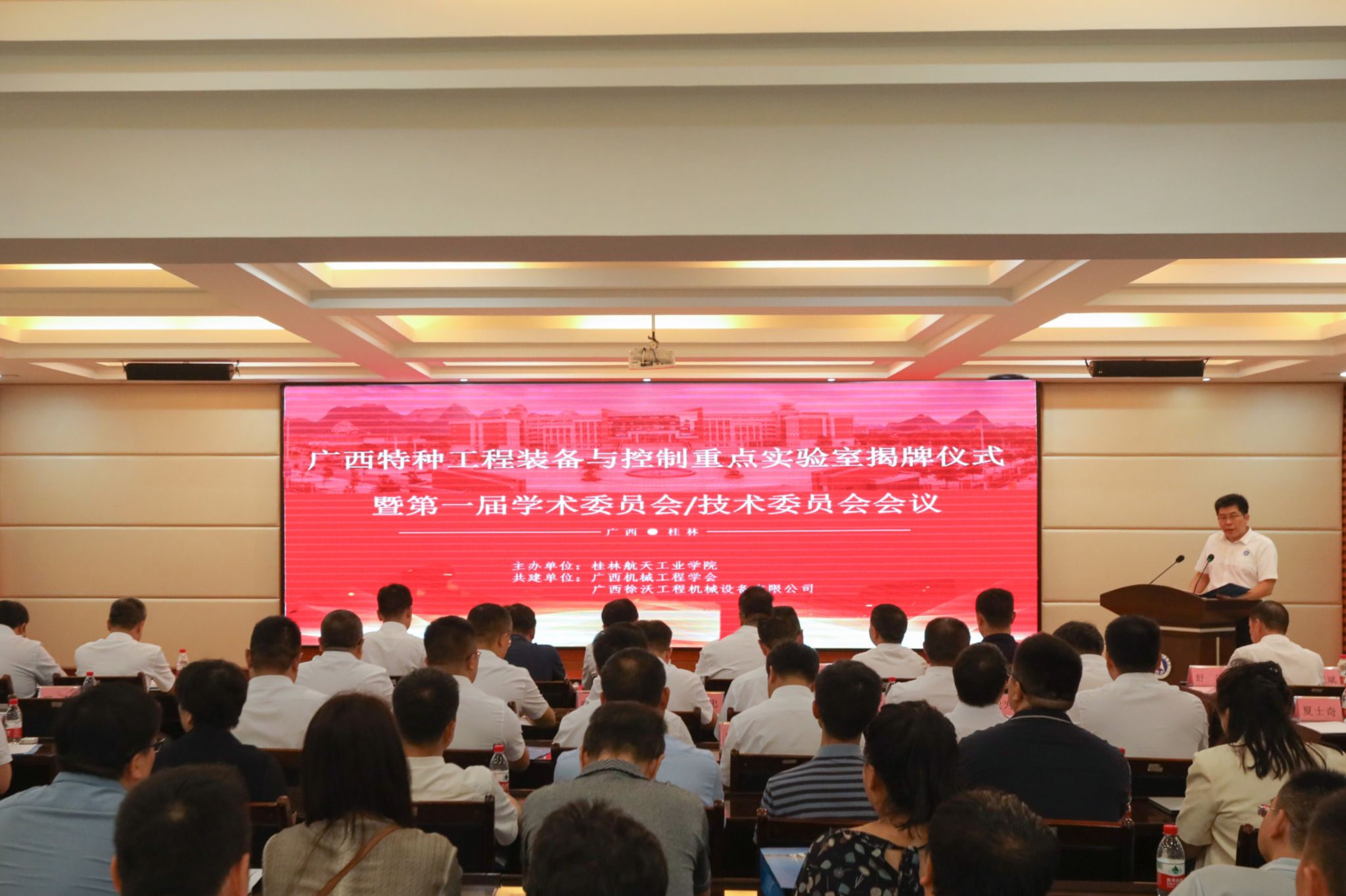 6月28日上午,我校首个自治区级广西特种工程装备与控制重点实验室揭牌仪式暨第一届学术委员会、技术委员会会议在飞天楼举行。学校党委书记韩峻峰、校长吴尽昭通过视频致辞,副校长张烈平现场致辞,发规处、人事处、科技处、财务处、国资处、机电工程学院、汽车工程学院、能源与建筑环境学院负责人及师生代表参加会议,学术界、企业界、桂林市科技局、工信局及广西机械工程学会等20余名嘉宾、学者到场指导。