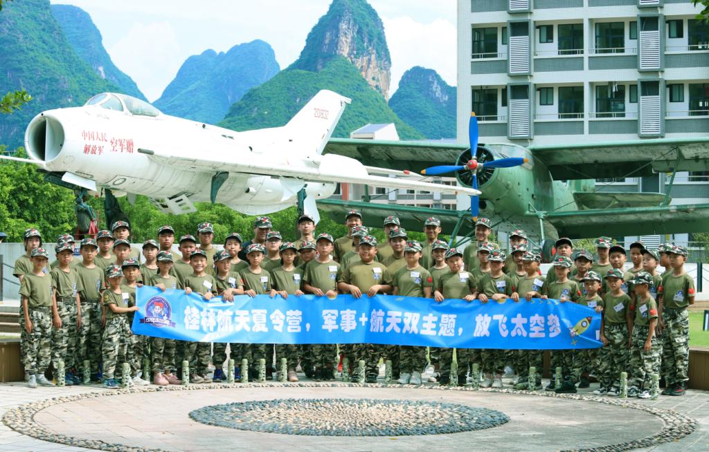 暑假期间,桂林航天军事夏令营首届研学活动在我校成功举行,来自广西各地的199名中小学生参加了活动。该活动以“航天+军事”主题,为期14天。