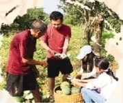 (驻村第一书记刘飞帮贫困户采摘西甜瓜)