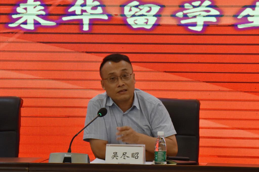 吴尽昭代表学校向新生的到来表示热烈欢迎。对即将开启桂航留学生活的新生们,吴尽昭提出了三点殷切期望:一是希望大家能够珍惜此次学习机会,充分利用好语言环境,学好中文;同时利用在桂林学习和生活的机会,体验桂林的风土人情,认真学习和感受博大精深的中华文化。二是希望同学们能够尽快适应在学校的学习和生活,主动融入学校文化;遵守中国的法律法规和学校的校纪校规,尊重中国的风俗习惯。三是希望留学生们能够成为文化交流的使者,向自己的家人朋友介绍中国之美、桂林之美和桂航之美。