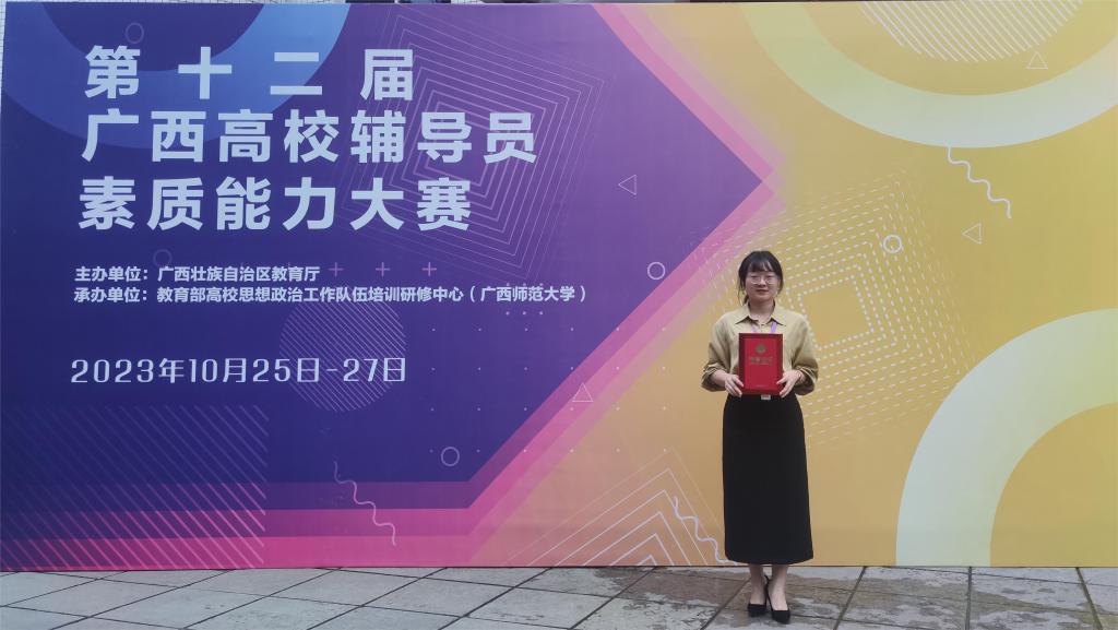10月25日至27日,由广西壮族自治区教育厅主办,教育部高校思想政治工作队伍培训研修中心(广西师范大学)承办的第十二届广西高校辅导员素质能力大赛在广西师范大学举行,来自全区各高校90余位选手参加比赛。经过激烈角逐,我校计算机科学与工程学院杨恋老师代表学校参赛喜获大赛二等奖。