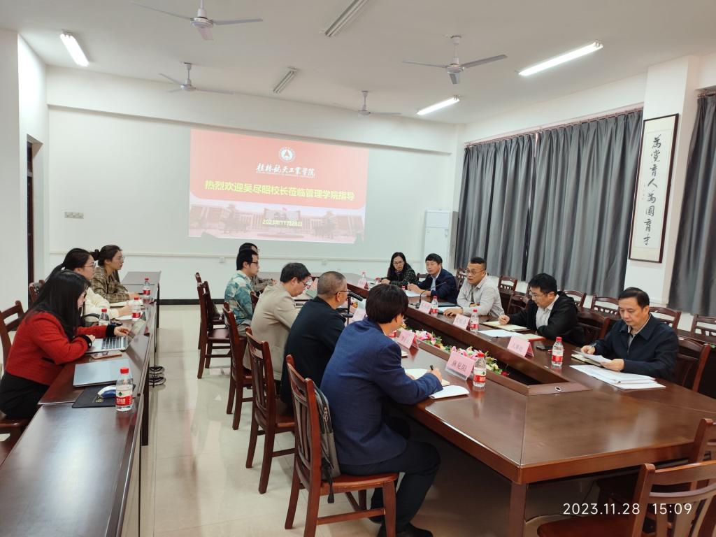 11月28日,校长吴尽昭率人事处、规划处、科技处、校办相关领导一行到管理学院调研指导“数智碳中和创新团队”科研工作,院长张一纯及创新团队教师参加座谈会。