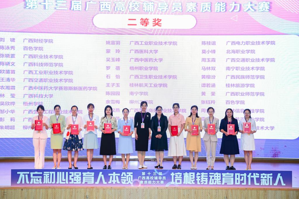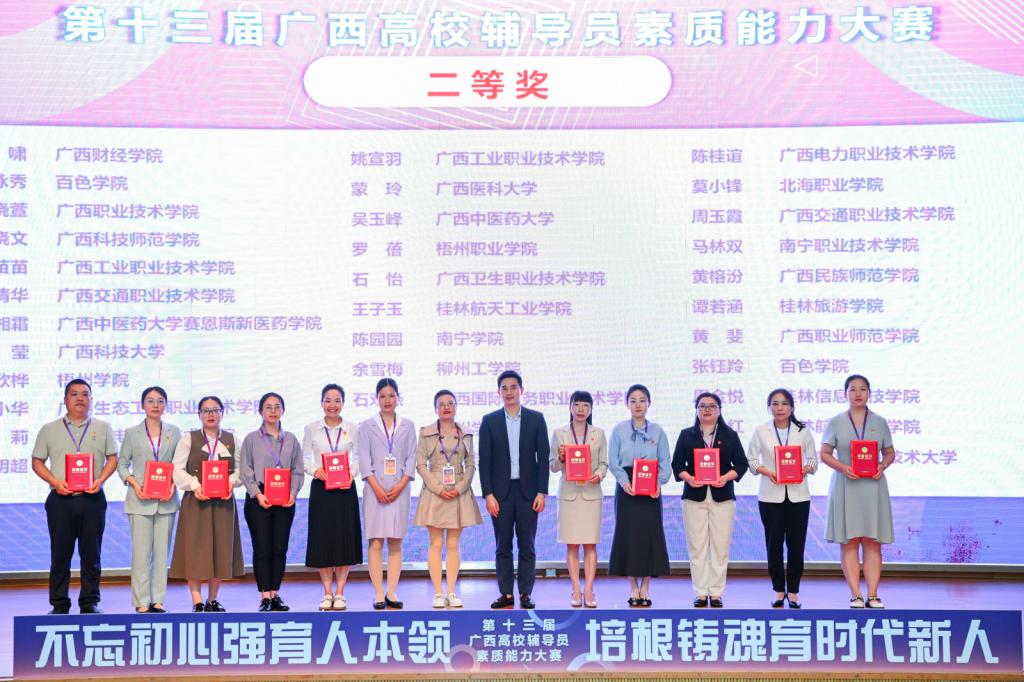 4月18日至20日,由广西壮族自治区教育厅主办,教育部高校思想政治工作队伍培训研修中心(广西师范大学)承办的第十三届广西高校辅导员素质能力大赛在广西师范大学顺利举办,来自全区79所高校108位选手参加比赛。经过激烈角逐,我校计算机科学与工程学院辅导员王子玉、外语外贸学院辅导员雷冬红均获二等奖。王子玉荣获大赛基础知识测试“最佳表现奖”,为参加此赛事的新突破。