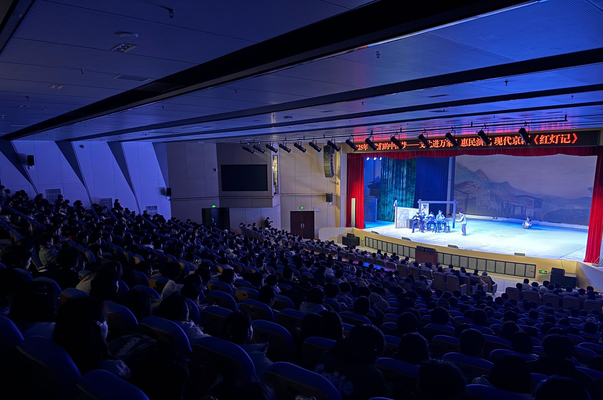 报告厅座无虚席,师生们满怀期待。大幕拉开,熟悉的旋律响起,演员们以精湛的技艺、饱满的热情,将《红灯记》中李玉和、李奶奶、铁梅等英雄人物刻画得栩栩如生。跌宕起伏的剧情、激昂有力的唱腔,把观众带回到那个战火纷飞的革命年代,让大家深刻感受到中国共产党人英勇无畏、前赴后继的崇高精神。作为革命现代戏的巅峰之作,《红灯记》以抗日战争为背景,剧中经典唱段《都有一颗红亮的心》《痛说革命家史》等,唱出共产党人的坚定信仰与家国大义。铁梅高举红灯的瞬间,不仅是舞台上的高光时刻,更是几代人心中“革命火种代代传”的精神象征!