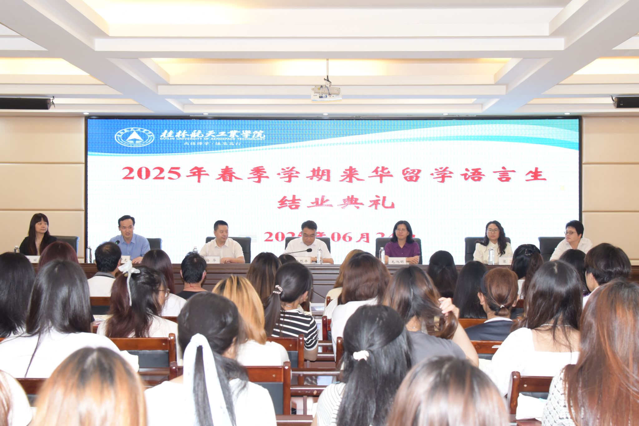 6月24日下午,我校2025年春季学期来华留学语言生结业典礼在飞天楼520会议室隆重举行。副校长张烈平、党委宣传部、校团委、教务处、国际交流处相关负责人,教师代表及全体结业学生参加了此次活动。