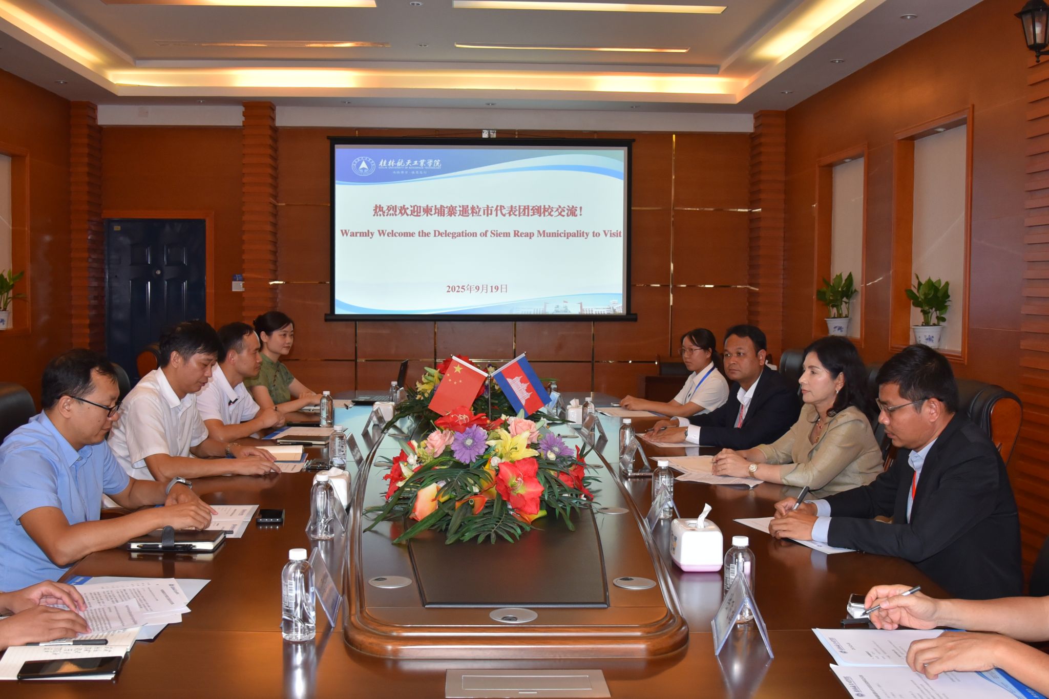 9月19日下午,柬埔寨暹粒市毛淑英副市长一行3人在桂林市外事办公室相关负责人陪同下到访我校,副校长杨永昌热情接待了来访客人,国际交流处、管理学院、航空服务与旅游管理学院相关负责人参加了座谈会。