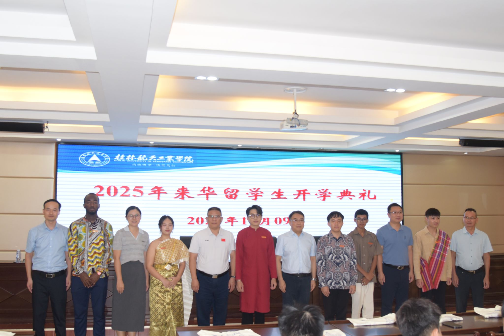 典礼上,张烈平代表学校向远道而来的120余名来华留学生表示热烈欢迎并寄予厚望。他鼓励同学们珍惜在桂航的求学时光,积极适应校园生活,既要借良好的语言环境勇敢说中文、攻克沟通障碍,也要走出校园体验风土人情,感受中华文化“和而不同”的博大精深。希望每一位留学生都可以成为中外文化交流使者,今后将在中国的所见所感以及桂航的珍贵记忆传递给世界,让更多人读懂中国故事与桂航魅力。