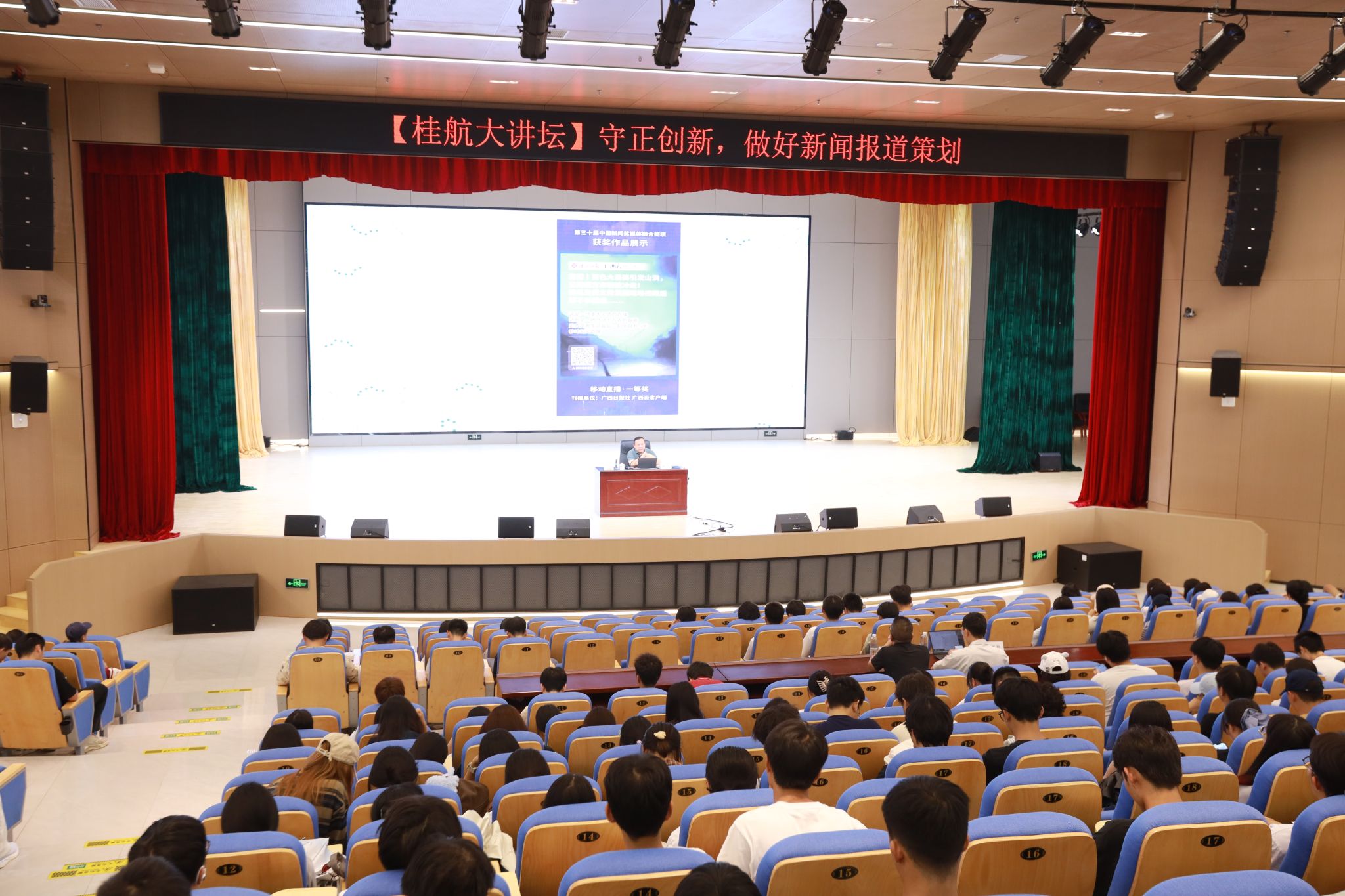 据悉,本次《守正创新,做好新闻报道策划》专题授课,是由学校党委宣传部组织的年度校园宣传工作系列培训之一,培训旨在提高校园通讯员写作水平,提高新闻写作与策划能力,更好地展示校园文化生活。校园宣传工作系列培训已成为讲好“桂航故事”,发出“桂航声音”的有力举措,本次专题授课依托“桂航大讲坛”,吸引到近800名师生到场学习。